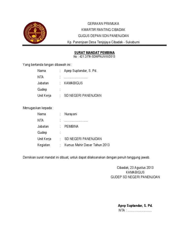 Contoh surat mandat pramuka gudang surat.